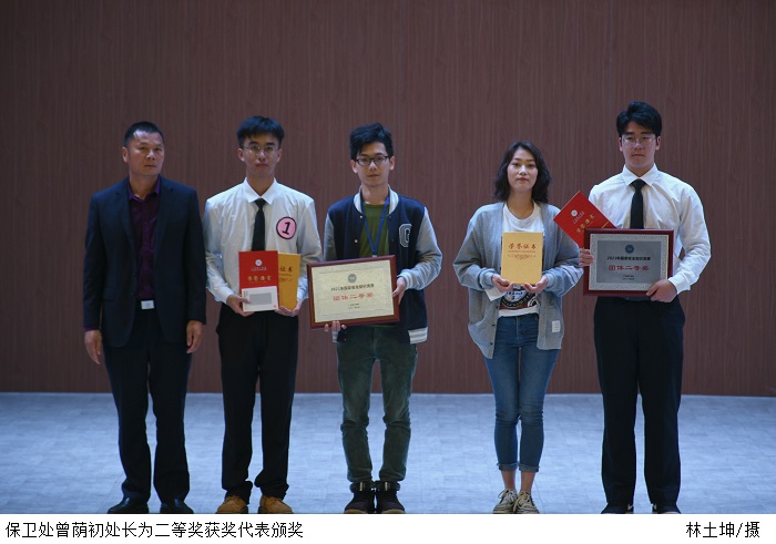最终,艺术系代表队夺得本次竞赛一等奖,会计学院和信息技术学院代表队获得二等奖,工业系、汽车系、建设学院、电气学院、外国语学院、经管学院、体育系七支代表队获得三等奖。学生处处长谭蒙革、保卫处处长曾荫初、学生处副处长彭雪帆分别为获奖代表颁奖。
