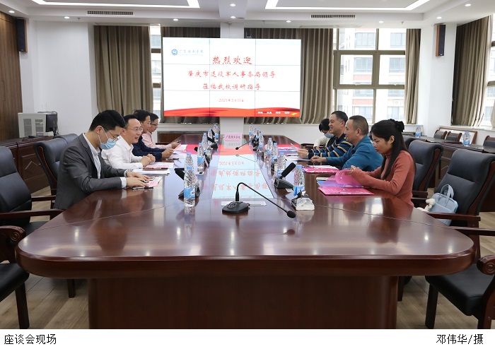 本网讯(宣传部 杨文丹)3月11日下午,肇庆市退役军人事务局副局长刘付运华一行到beat365官网调研。座谈会于科技楼12楼会议室举行,beat365官网副校长谭锦兴、继续教育学院院长、退役军人教育培训学院院长叶涌、继续教育学院副院长周文海、退役军人教育培训学院副院长刘东出席。