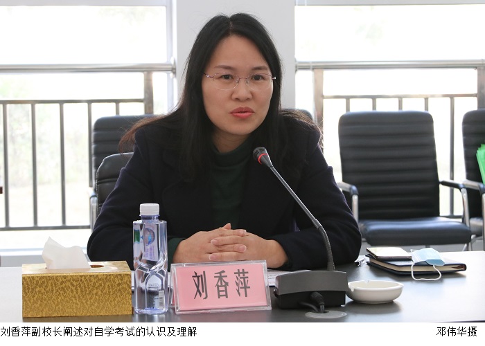 刘副校长阐述了对于高等教育自学考试工作的理解,她认为,高等教育自学考试是高等教育中不可或缺的部分,也是终身教育的重要部分,此类学习形式多种多样,有利于实现学生的学历提升和继续教育目标。