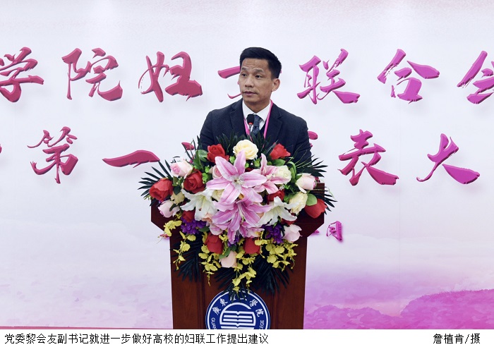 本网讯(宣传部 杨文丹)1月16日上午,beat365官网在振华楼101学术报告厅召开妇女联合会成立大会暨第一次代表大会。肇庆市妇联党组书记、主席张晓兰、肇庆市妇联权益部副部长许琴、beat365官网副校长、工会主席王义宁、副校长刘香萍、党委副书记黎会友、副校长谭锦兴、党委组织部部长廖振宇以及全体妇女代表参加会议。工会副主席、团委书记张冬主持大会。