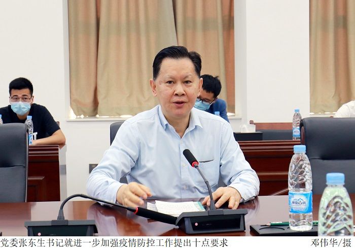 张东生书记指出,当前国内疫情呈多点散发、点状暴发态势,多个省份出现师生感染,多所学校发生聚集性疫情,疫情防控形势严峻复杂。全校各部门及广大师生要深入学习习近平总书记关于疫情防控的重要讲话指示精神,切实扛起政治责任,进一步担当履职,始终绷紧疫情防控这根弦,坚持“外防输入,内防反弹”总策略,压实责任,全面落实“快严实”要求,织密扎牢校园疫情防控网。