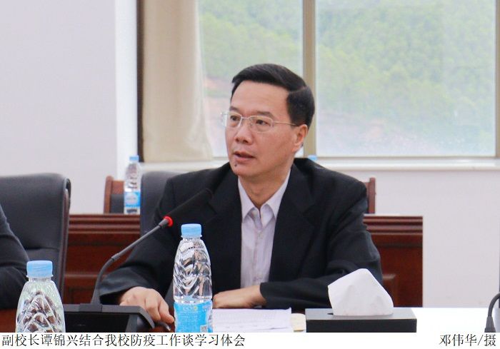 谭锦兴指出,当前全国疫情防控形势严峻复杂,各部门、各院系需严格落实校门管理,在把好校园出入关同时,加强新冠肺炎防控知识宣传,进一步提高师生防控意识,做好师生健康监测工作。