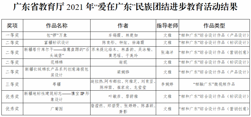 “爱在广东”民族团结进步教育活动由广东省教育厅主办,广东省少数民族学生教育管理服务研究与指导中心(广州大学)承办,面向全省高校师生开展。活动包括“相遇广东”主题演讲作品征集、“相融广东”微视频作品征集、“相和广东”综合设计作品征集3个项目。