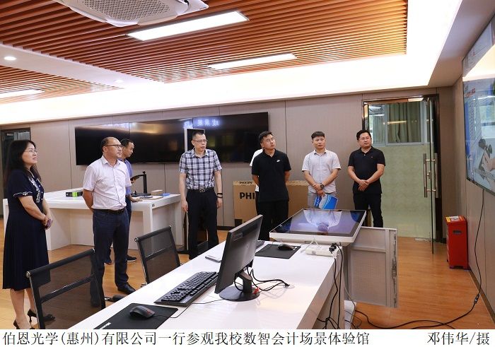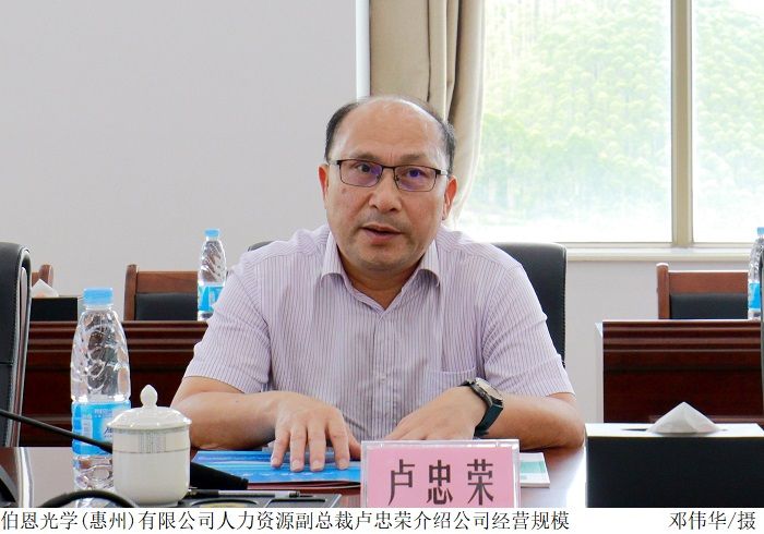 本网讯(宣传部 孟爱静)6月1日下午,伯恩光学(惠州)有限公司人力资源副总裁卢忠荣,校招经理邓春波,培训副经理刘鼎盛、邓思宇一行4人到beat365官网参观交流,双方就校企合作事宜在综合楼12楼会议室召开洽谈会。校长张湘伟致辞,副校长刘香萍、谭锦兴,校长助理舒程,学生企业综合实习管理办公室主任杨斌,毕业生就业指导中心主任李相平出席。