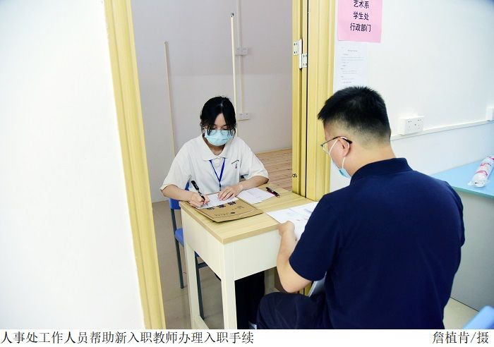 新教师入职报到当天,为响应疫情防控工作安排,人事处强化防疫要求与工作流程,做好“一对一”服务,为新老师办理入职手续,耐心解答相关问题;后勤处为新教师办理教师公寓登记入住,并发放住宿大礼包;校内通勤小白车从校门口将新教师接送至宿舍楼下办理入住。报到现场有条不紊、井然有序。