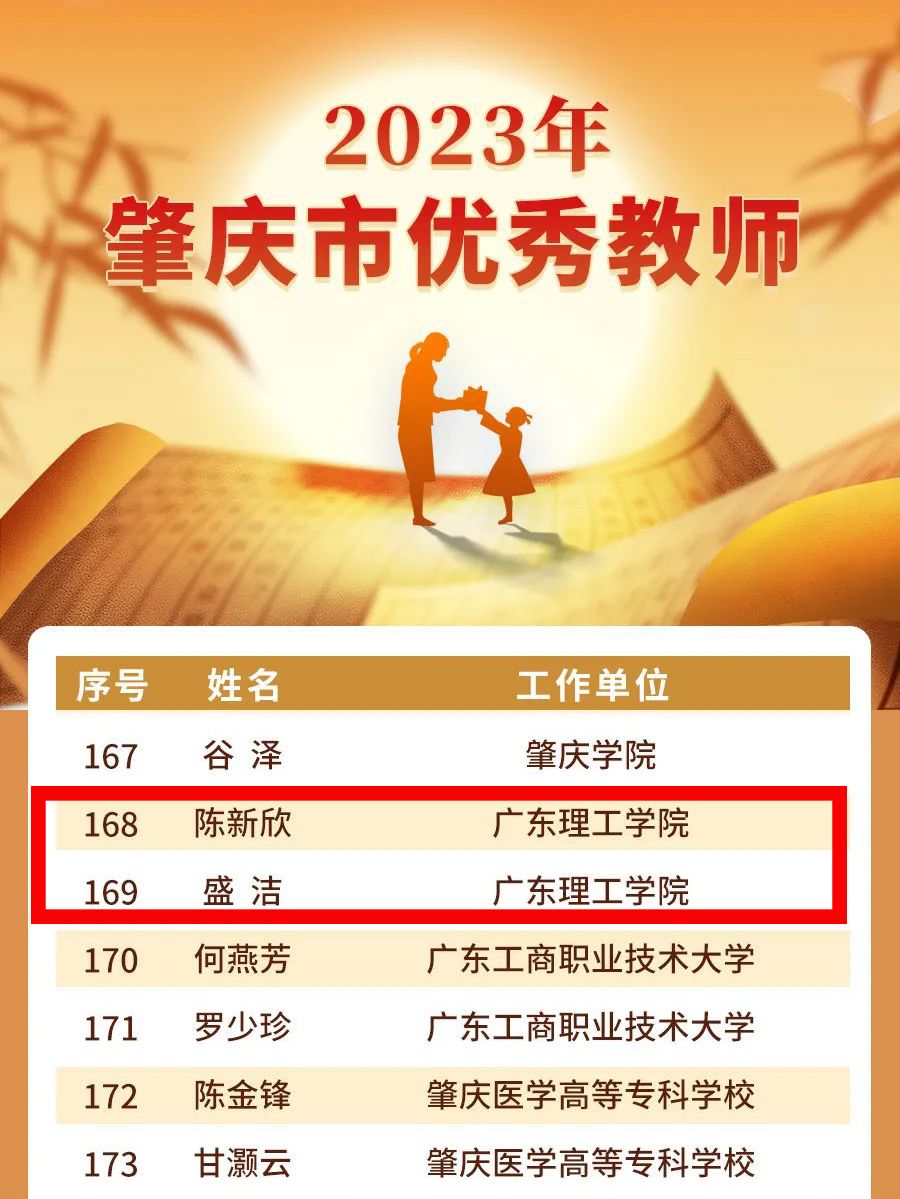 本网讯(宣传部)近日,肇庆市教师节庆祝大会通报表扬了2023年肇庆市教育系统先进个人,beat365官网会计学院盛洁、电气与电子工程学院陈新欣荣获肇庆市优秀教师,马克思主义学院赵新影荣获肇庆市优秀思政课教师。
