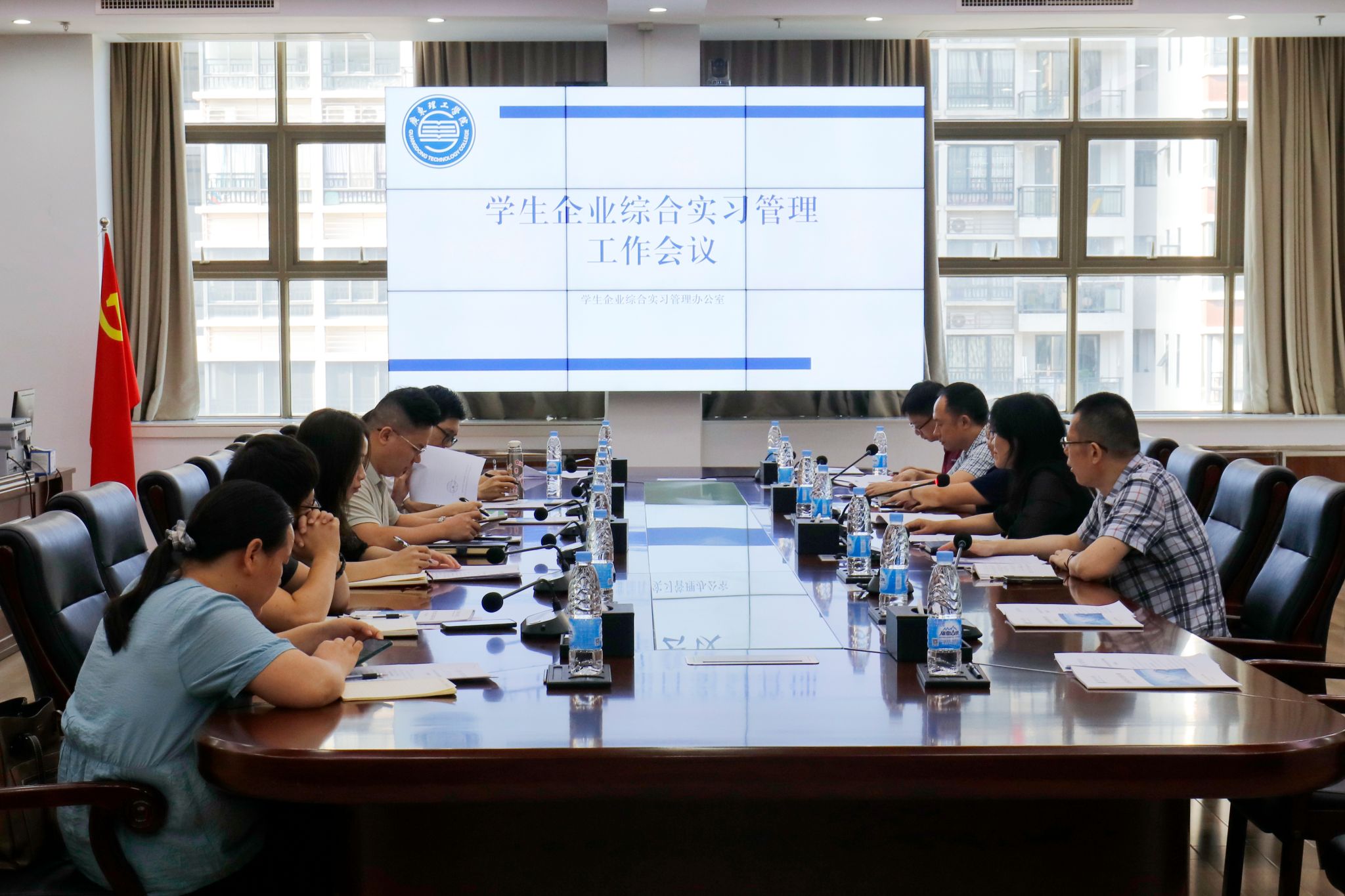 校长助理舒程通报了现阶段2020级学生企业综合实习各项工作进展,分析研判工作中存在的突出问题,传达2020级学生企业综合实习工作的各项要求。他强调,第一,各学院要明确工作要求,梳理工作重点,压实工作责任,确保实习工作的有序开展;第二,各学院要尽快完成学生综合实习师生指导关系匹配,督促实习指导教师认真完成实习指导任务,线上实践课程教师要认真完成授课任务,确保线上线下实习工作顺利开展;第三,各学院实习指导教师要督促实习学生尽快完成校友邦的填报任务,认真完成四门企业综合实践课程的学习,关注学生们在实习期间的情况,帮助他们排忧解难;第四,各学院要积极主动开展访企拓岗的工作,与更多、更好、更优质的企业建立校企合作基地,搭建与本学院专业相匹配的实习平台,提高校企育人质量。