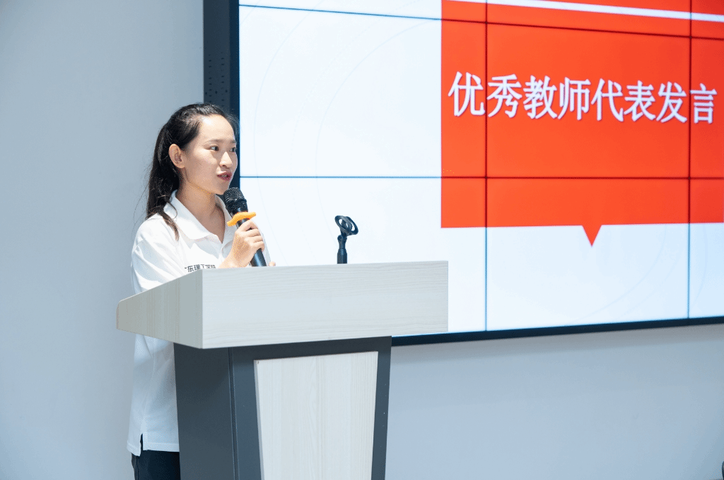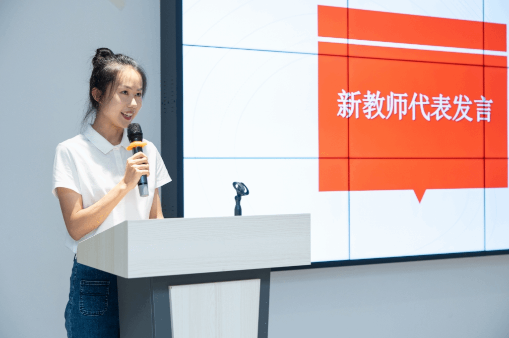 姚淑君老师作为新教师代表发言,姚老师结合自身从教感悟,表示作为新时代的教育工作者,不仅要有站稳讲台的丰富知识储备,更要有站好讲台的高尚品德情操,以模范行为引导学生,做学生为学、为事、为人的大先生。张丽娟老师作为优秀教师代表发言,张老师结合从教2年经历的困惑与成长,提出牢记教育使命,甘当奉献者;牢记修身厚德,乐当传道者;牢记终身学习,争当授业者的感悟。