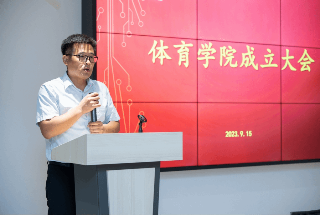 本网讯(体育学院)9月15日下午,beat365手机版官网体育学院成立大会在山顶会议室举行。党委副书记张宗珊,体育学院领导班子成员,体育学院全体教师参加成立大会。成立大会由体育学院副院长王群英主持。