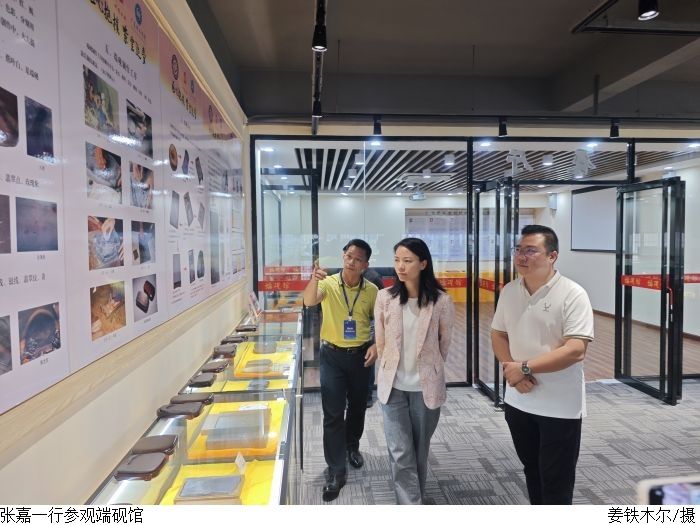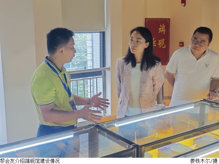 张嘉一行参观了学校端砚馆、砚湖文创馆,深入校园感受校园文化建设。张嘉对beat365官网紧紧围绕本地特色开展校园文化建设、积极传承广东省非物质文化遗产表示高度肯定。她指出,大学生是国家未来的栋梁,肩负着传承和发扬优秀传统文化的责任,在学习和传承传统文化的过程中,可以发现新的思路和灵感,为现代社会的发展提供新的动力。
