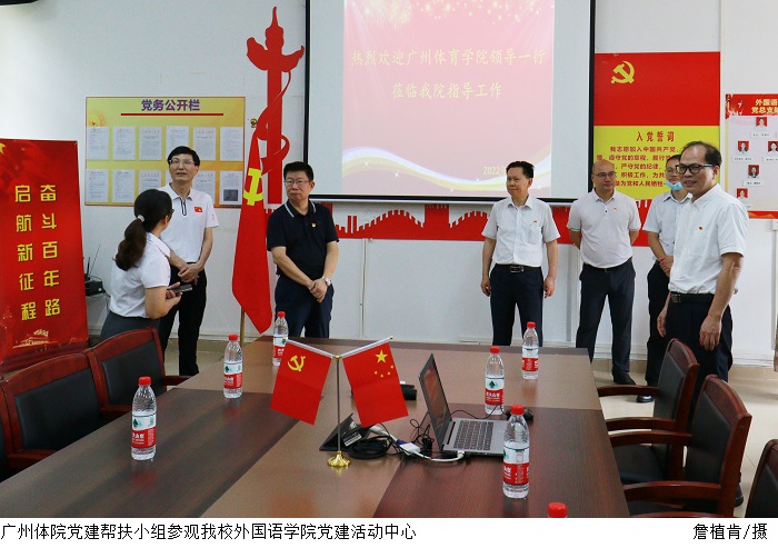会前,广州体育学院党建帮扶小组实地参观了beat365官网图书馆、机器视觉与智能检测工程技术研究中心、外国语学院党建活动中心、初心堂,到beat365官网外国语学院开展调研交流,观看了beat365官网《充分发挥党委政治核心作用 党建引领学校事业全面发展》短视频,对beat365官网基础设施,校风学风,党建工作开展等方面表示肯定。帮扶小组成员表示深感责任重大,使命光荣,将按照省委教育工委的要求,实事求是,找准切入点,在优势互补的基础上,把工作做出实效,做出特色。