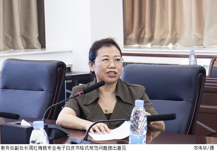 会上,党委宣传部部长张冬、教学质量检测与评估处处长张俊林、教务处副处长周红梅分别就新闻稿件规范审核、网页数据更新、专业电子白皮书格式规范等问题进行分析反馈。