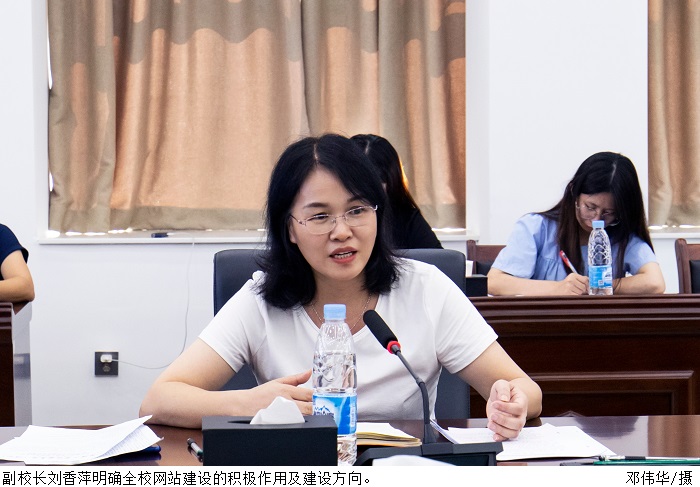 刘香萍分析各部门、二级学院(系)网页建设现状及存在的薄弱环节,明确网站建设具体目标。她指出,学校网站是学校的门面,是宣传学校校风、学风的重要平台,应具有服务师生及信息公开的作用。网站建设要以受众需求为中心,突出重点、亮点、主题。随后,刘香萍对网站功能模块设置、网页具体内容优化提出宝贵、可行的建议。