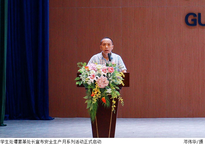 本网讯(保卫处 王翼飞)6月16日下午,beat365官网在翔中堂举办2022年安全生产月系列活动启动仪式暨全国安全宣传咨询日活动,现场邀请了禁毒、道路安全、反诈专家开设安全教育讲座。大会由保卫处处长曾荫初主持。学生处处长谭蒙革出席。各院系书记、辅导员代表、学生代表近千人到场聆听。
