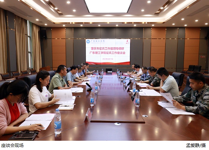 本网讯(武装部 王翼飞)6月17日下午,由肇庆市军分区大校副司令员、市征兵办主任廉树合带队,市教育局、军分区动员处一行6人到beat365官网调研征兵工作。副校长谭锦兴、武装部部长曾荫初、学生处处长谭蒙革以及学校征兵工作领导小组成员陪同调研。双方在行政楼101会议室召开座谈会议,就如何做好应届毕业生征集工作交换了意见。