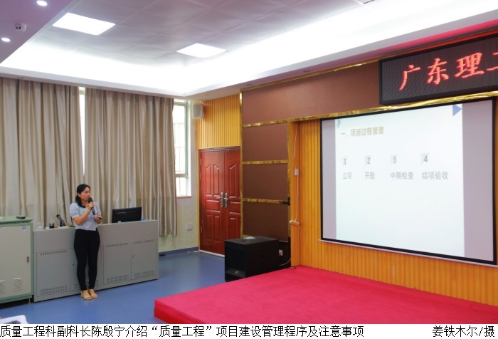 副校长刘香萍就“质量工程”建设目的、意义及建设内容等方面作简要介绍,她指出,“质量工程”建设应以问题为导向,提前做好统筹规划,加强过程管理。