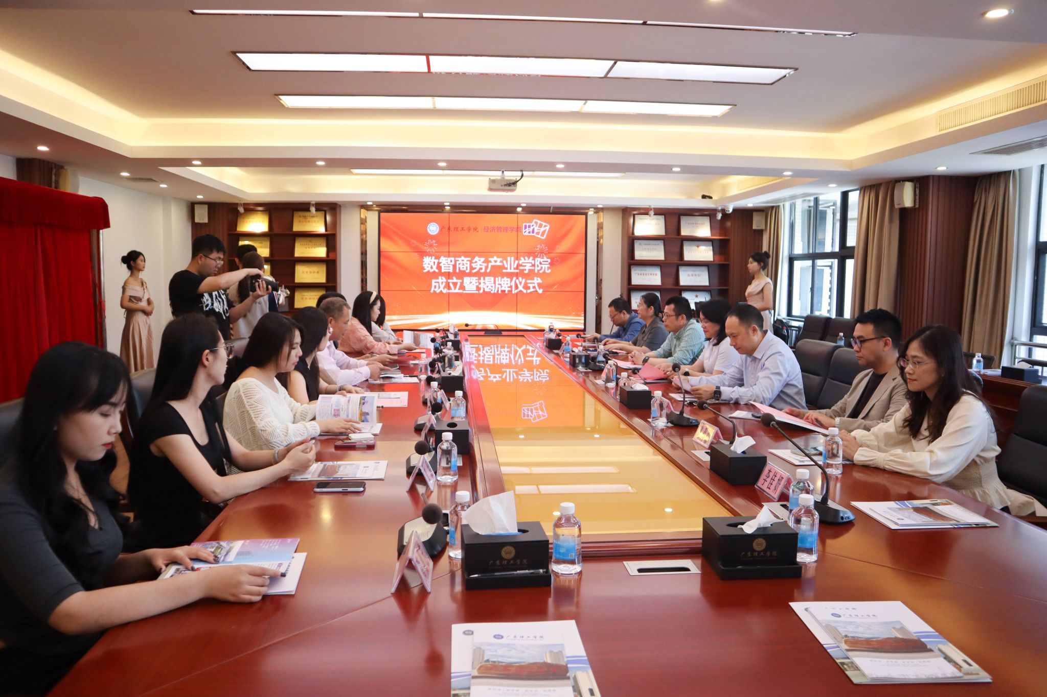 本网讯(经济管理学院)4月15日下午,beat365手机版官网数智商务产业学院揭牌仪式在beat365官网鼎湖校区行政楼三楼会议室举行。
