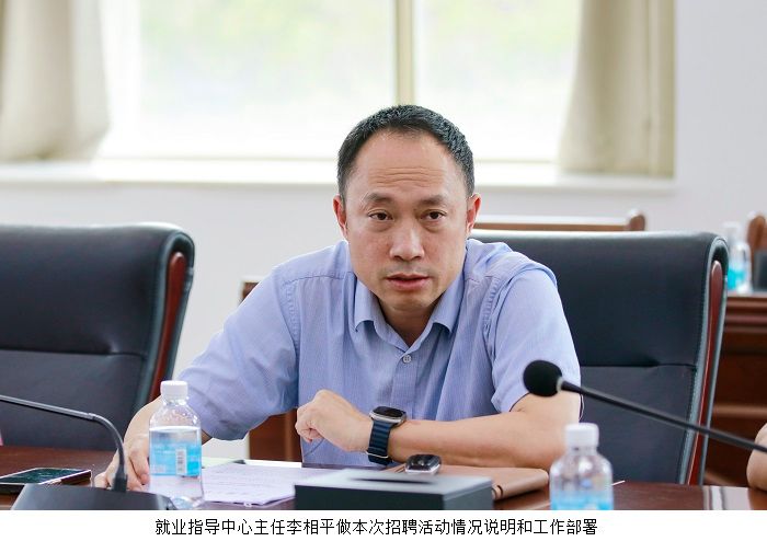 本网讯(就业指导中心)为保证2025年企业综合实习校园双选招聘活动顺利举行,5月29日,学校在综合楼12楼会议室召开2025年企业综合实习校园双选招聘活动部署会,党委副书记张宗珊、毕业生就业指导中心主任李相平、各职能部门负责人、二级学院党委书记出席会议。