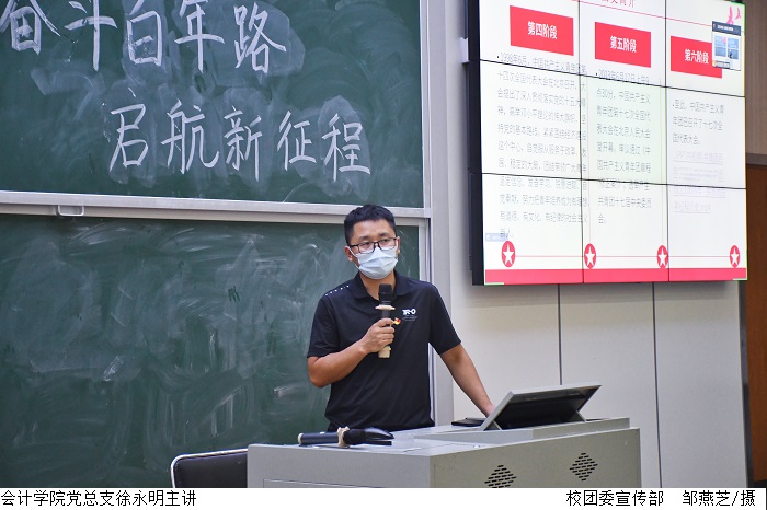 本网讯(校团委 朱云青)5月24日,校团委组织校级青马学员于桃李厅开展“青马工程”百年团史学习教育专题团课。本次团课由会计学院党总支副书记徐永明主讲。