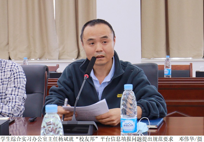 杨斌就“校友邦”平台信息填报问题提出规范要求,并指出各院系需利用双选会这一契机,多与企业签订校外实践基地协议,与企业联合开发实践课程。