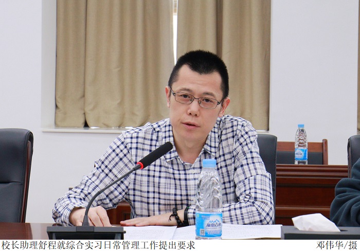 舒程指出,各院系需重视综合实习基地建设问题,丰富完善企业综合实习管理体系,立即行动,做好实践项目课程开发准备,为学生提供线上学习资源。同时加强对“校友邦”平台信息督导,了解学生动态,紧紧围绕本科教学工作合格评估标准,将企业综合实习工作抓实抓细抓落地。