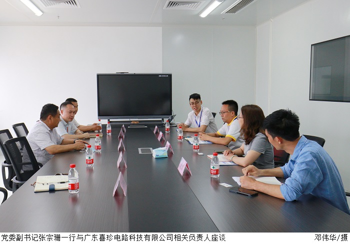 在广东喜珍电路科技有限公司,张宗珊等人参观了事业部的生产运作情况,人力资源总监张妮介绍了公司的发展前景,并提到公司具有完善的人才梯度建设,战略性人才储备,工作安稳,环境舒适,发展空间大。她表示公司的发展离不开人才的支持,并希望今后会进一步加强校企合作交流,共谋发展。