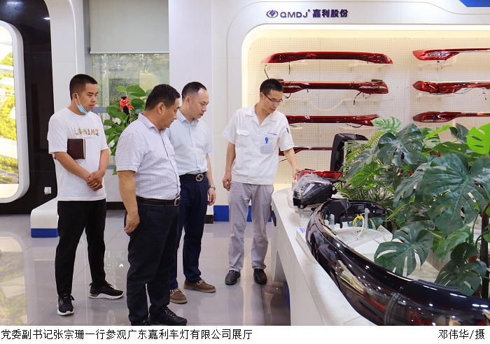 在广东嘉利车灯有限公司综管部部长李秀峰陪同下,张宗珊一行参观了车灯展厅。随后,张宗珊与总经理张泳进进行了面对面座谈交流,张泳进表示公司注重关怀员工成长和员工的职业规划,并希望接下来能够与学校多联系、多交流。