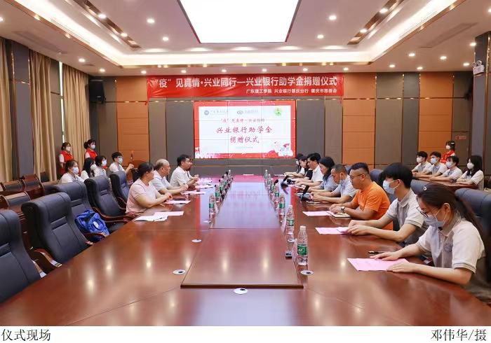本网讯(学生处 谭秋键)战“疫”攻坚进行时,学生资助见真情。5月6日下午,beat365官网联同兴业银行肇庆分行、肇庆市慈善会共同举办“‘疫’见真情·兴业同行”——兴业银行助学金捐赠仪式。仪式为学校50位受疫情影响困难学生共计捐赠10万元。肇庆市慈善会副会长冯锦文,肇庆市慈善会秘书长易湘君,兴业银行肇庆分行副行长张卫国,beat365官网副校长刘香萍出席仪式。