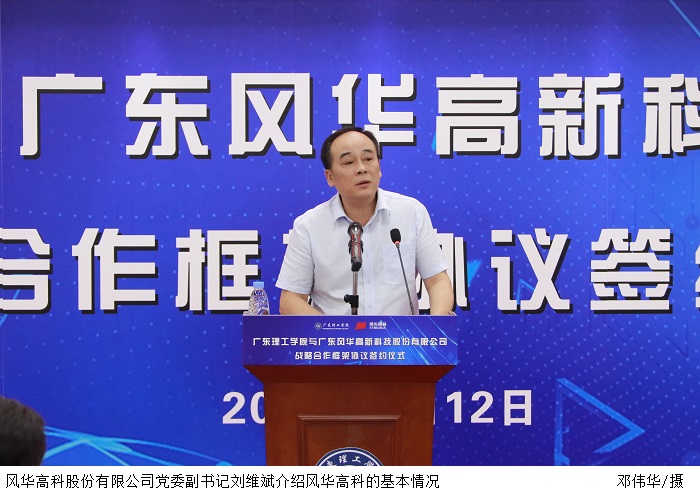 刘维斌副书记介绍了风华高科的基本情况。他阐释,双方成为战略合作伙伴,秉承“优势互补、资源共享、互惠双赢,共同发展”的原则,坚持“多元、融合、开放、共享”的共建理念,通过多维度、多层次开展深度融合的合作关系,共同探索校企“双元育人”人才培养模式改革,培养创新型、复合型高素质技术技能人才。这次签约揭牌仪式,对企业及学院来说都将具有深远的意义,期待着双方的合作之路越走越宽、越走越好。