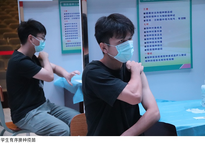 beat365官网谭锦兴副校长、学生处谭蒙革处长到现场查看新冠疫苗接种工作情况,并介绍beat365官网新冠疫苗接种现场严格按照接种要求,分为咨询区、信息登记区、等候区、接种区、留观区、冷链区、疑似异常反应处置区,保证接种全过程单向流动。整个疫苗接种流程及防疫工作程序严谨,操作规范,安全有序,有效保障接种顺利进行。