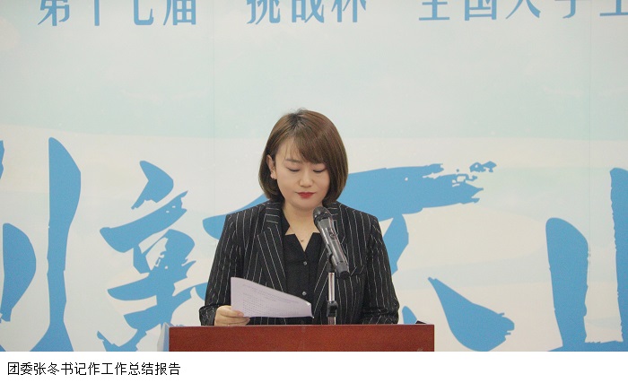 团委张冬书记在工作报告中总结了自学术科技节启动以来各项工作的开展情况,并表示:作为大赛的承办者,将高质量地做好各项服务,努力营造严格而温馨的竞赛环境,让更多参赛师生有展示自身才华的机会,进一步营造校园科技创新氛围。