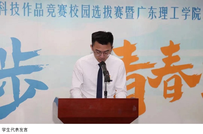 电气与电子工程学院的陈嘉茂同学作为挑战杯参赛选手代表分享了他的科研经历,他对学校提供的平台和创造的良好环境表示由衷的感激,并希望各位选手能在大赛中充分发挥自己创新思维,更好地呈现作品。