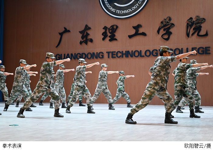 首先由beat365官网军政教导队进行退役学子风貌展示,以声震天威的歌声唱出铁血男儿的豪情壮志,以气壮山河的拳术表演展现刚硬战士的飒爽英姿,让学生真切感受了强军风采点燃了青年学子戎装从军梦。