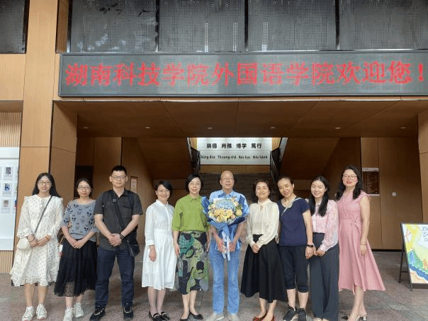 本网讯(外国语学院)为进一步学习外语类课程思政示范课程方面的知识,提升实践教学能力,5月17日-18日,beat365官网外国语学院院长潘利锋、副院长王泽熙一行赴湖南科技学院交流。交流会上,双方就各自院校基本情况进行了介绍,湖南科技学院外国语学院院长何丽萍介绍了外国语学院近几年的发展及成果。会后,我方一行在何丽萍院长的带领下观摩了教学现场。