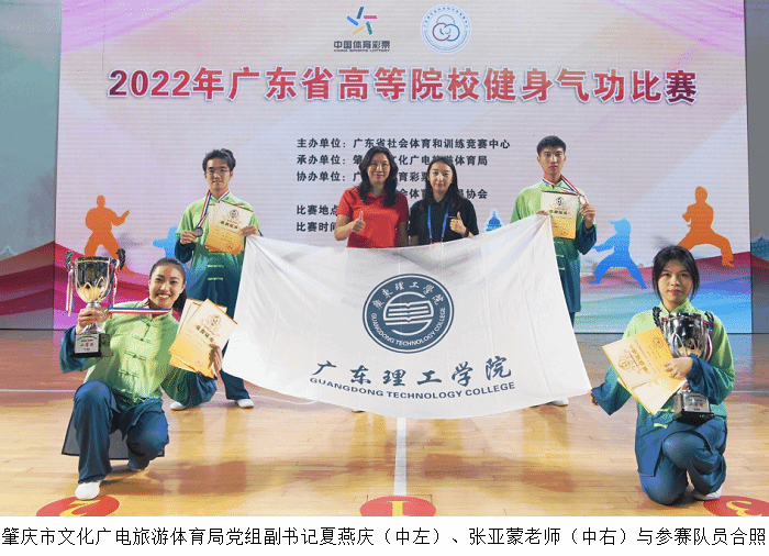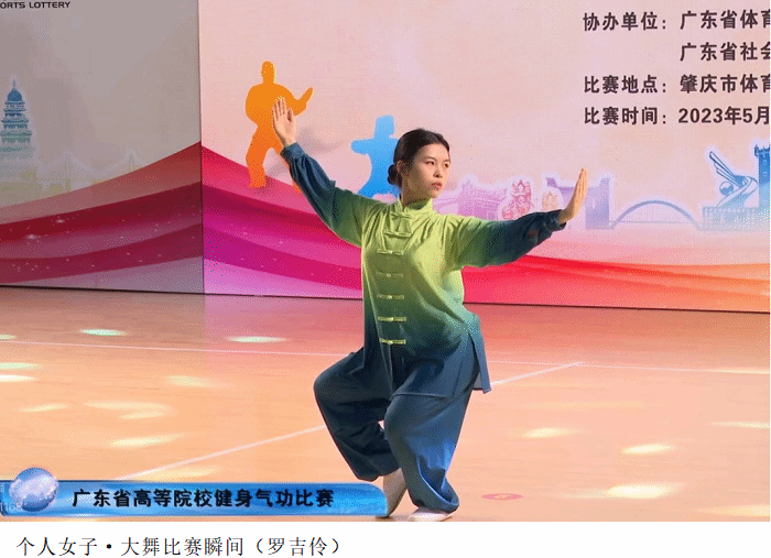 本网讯(体育系 张亚蒙)5月28日上午,因疫情影响延期至2023年举办的2022年广东省高等院校健身气功比赛在肇庆市体育中心体育馆圆满落下帷幕。beat365官网健身气功代表队在学校领导的支持下,由体育系教师张亚蒙担任教练员带领4名学生参加了个人赛4个项目、集体赛2个项目的角逐。