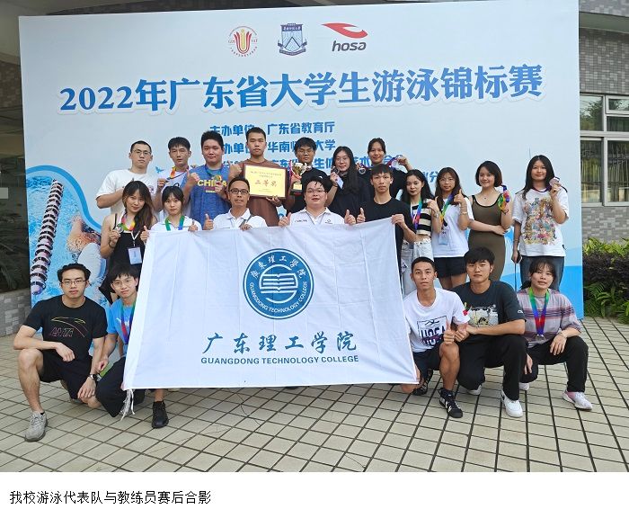 本网讯(体育系)5月27日至28日,由广东省教育厅主办的2022年广东省大学生游泳锦标赛在华南师范大学举行。此次参赛的有全省64所高校的900多名运动员和教练员。beat365官网游泳代表队在教练员钟天升、梁超英、谢剑鸣、杨雪君四位老师的带领下,运动健儿以更高、更快、更强、更团结的精神奋勇拼搏,最终取得1金2银5铜优异成绩为学校赢得荣誉。其中乙A组代表队获1金4铜及多项前八、团队总分一等奖,甲组代表队获2银1铜及多项前八名、团体总分二等奖。