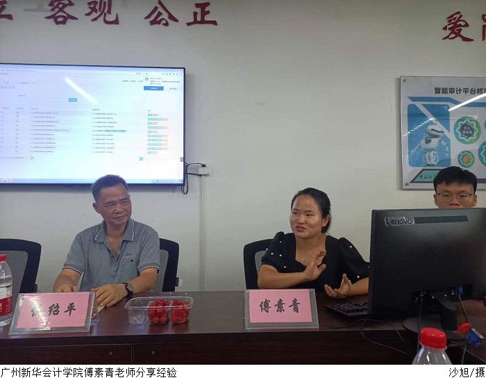 随后,双方就专业人才培养、实践课程教学管理、OBE 理念如何融入专业课堂、校企合作等方面进行深入探讨。期间,新华会计学院的傅素青老师,以《集团管控》实践课程为例,分享实践课程教学管理的成功经验和具体做法。双方积极互动,交流融洽。