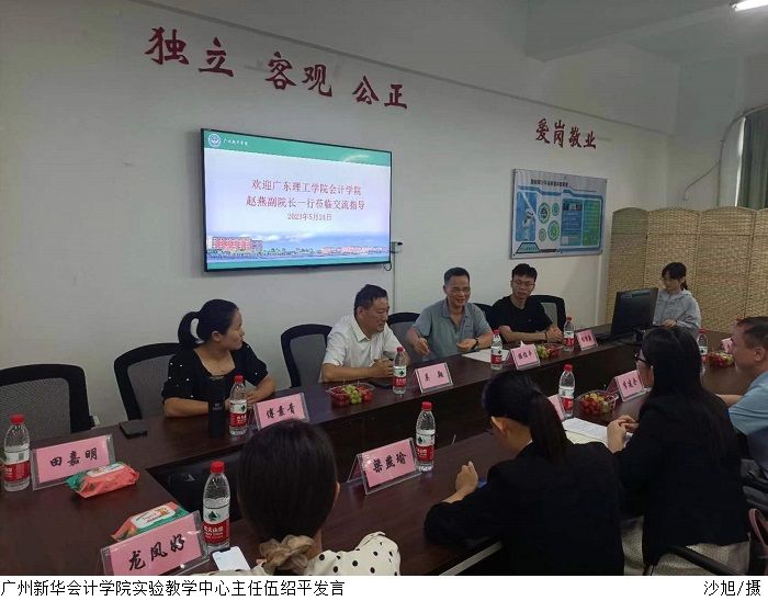 交流会上,吴翔首先对会计学院一行人的来访表示热烈的欢迎,并详细介绍了广州新华会计学院的学院概况、师资团队、专业特色、育人成果以及实验教学创新等取得的一系列成果。赵燕对新华会计学院的热情接待和实践教学管理方面的经验分享表示感谢,同时也对会计学院的基本情况作了简单介绍。