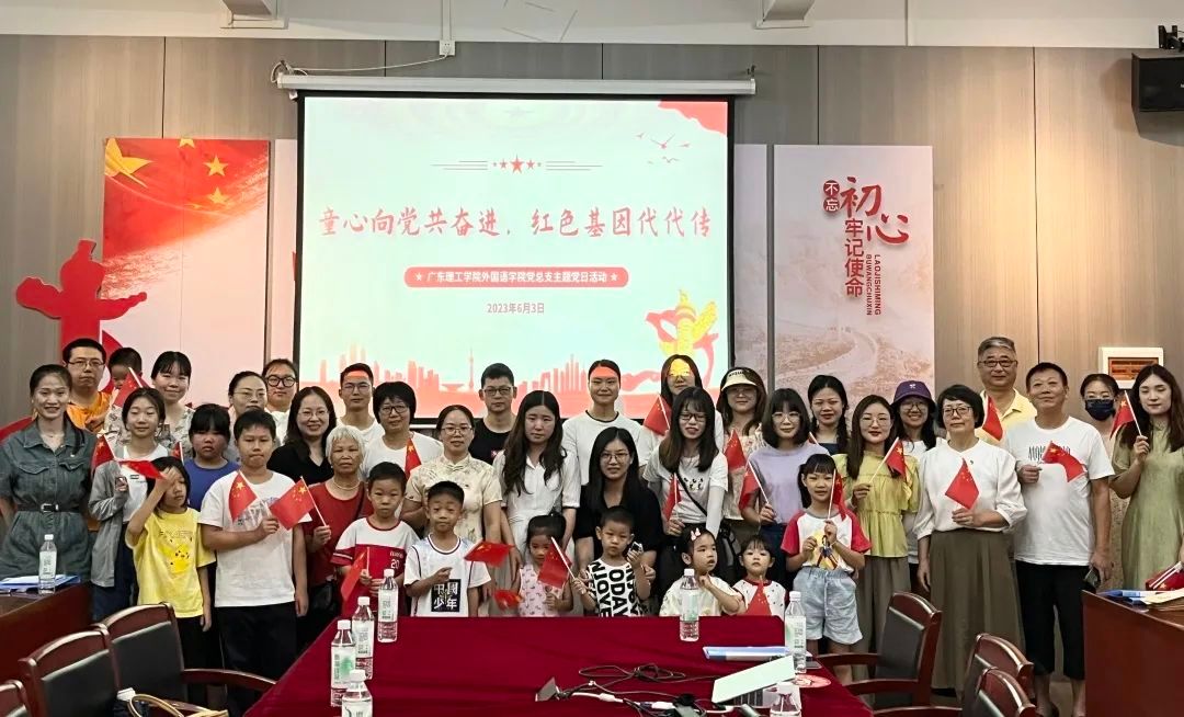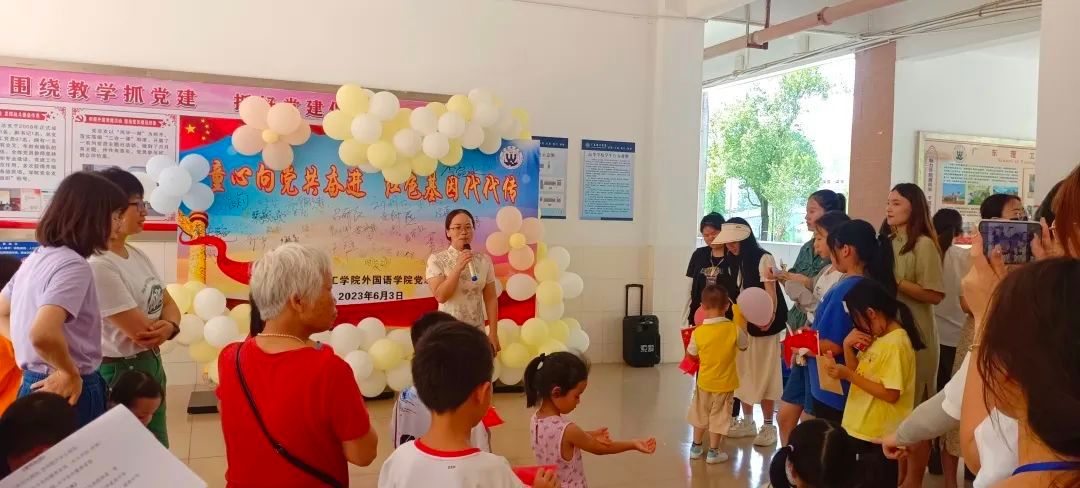 本网讯(外国语学院新闻中心)为讴歌中国共产党领导中国革命和建设取得的伟大成就,引导师生拥护党的领导,弘扬爱国主义精神,传承红色基因,关心关爱下一代,外国语学院党总支于6月3日举行“童心向党共奋进,红色基因代代传”主题党日活动。外国语学院党总支书记吕丽红、副书记吕媛、副院长王泽熙、教工党支部书记黄柳燕、学生党支部书记尚旭杰等党员教师及部分儿童家属参与。此次活动特别邀请了郭涛教授、夏侯富生教授、郭利民教授等老党员教师出席。
