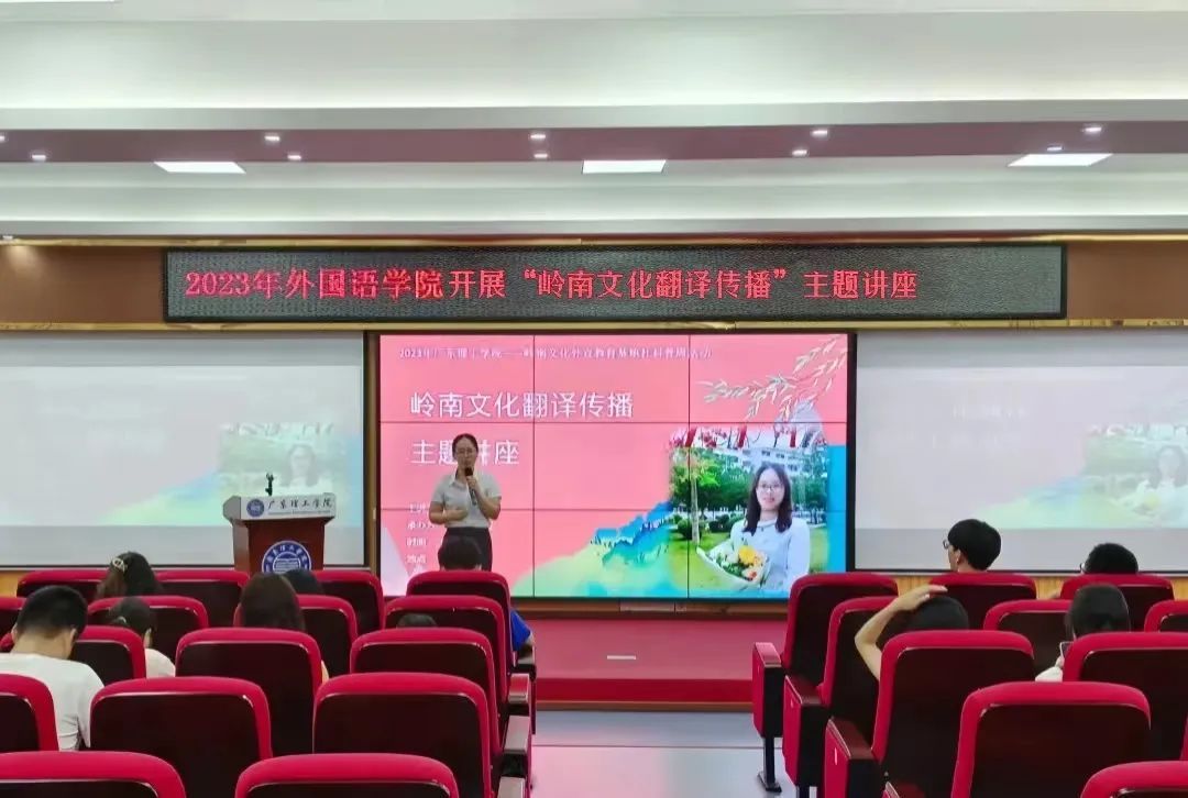 本网讯(外国语学院新闻中心)为弘扬宣传岭南文化,提高师生文化素养,“beat365手机版官网-岭南文化外宣科普基地”负责人吕丽红副教授于6月8日下午在42101报告厅开展岭南文化翻译传播主题讲座。全校百余名师生参与。