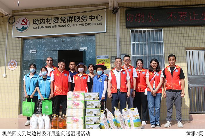 下午开展实践活动。先组织全体党员通过党知识问答,深入学习贯彻党的二十大精神;接着,到坳边村委开展慰问送温暖活动。在坳边村委工作人员的陪同下,支部全体人员分别走访看望社区内的低保户及部分困难群众家庭,给他们送上慰问品和温暖的问候。