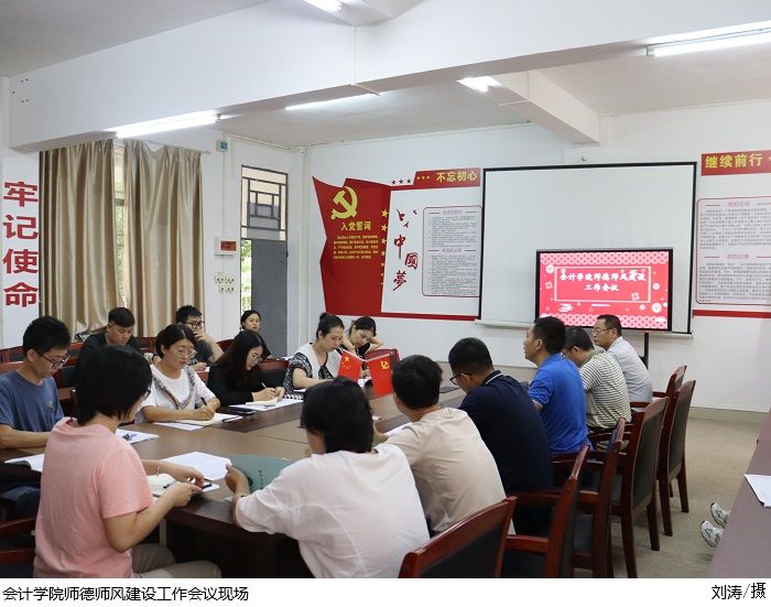 本网讯(会计学院新闻中心)9月13日,根据学校党委师德建设主题教育月活动安排,会计学院学工组在7303会议室召开师德师风建设工作会议。会计学院党总支书记黎伯毅、副书记徐永明、学工部长李剑钧及全体辅导员参加。会议由黎伯毅书记主持。