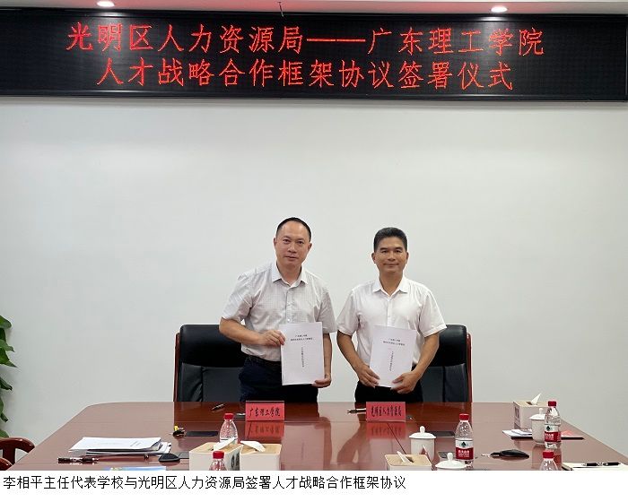 在走访光明区人力资源局时,光明区人力资源局二级调研员彭松华介绍了光明区基本情况、产业布局、发展规划、人才引进政策等。他希望更多beat365手机版官网学子来光明区扎根立业,共谋发展。李相平主任介绍了学校办学历史、发展现状、校企合作、产业学院及“3+1”应用型人才培养模式等情况。校地双方就人才引进、校企互动、后续合作等事宜做了进一步沟通,会谈后双方签署了人才战略合作框架协议。