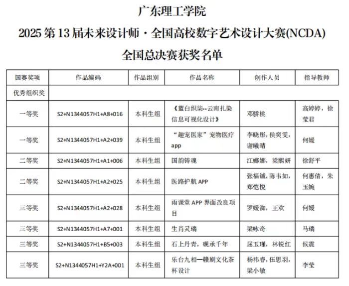 学院长期践行“以赛促教、以赛促学、以赛促改”的人才培养机制,注重提升学生创新思维与实践能力。此次获奖是学院设计教育成果的集中体现,也为学校建设注入了艺术设计领域的新动能。学院相关负责人表示,将以此为契机,加大设计教育投入,优化教学资源配置,培养更多创新型、实践型、数字化的未来设计人才。