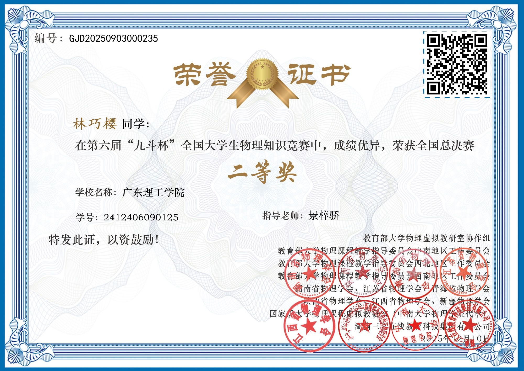 第六届“九斗杯”全国大学生物理知识竞赛(全国总决赛) beat365手机版官网学生获奖情况 |
