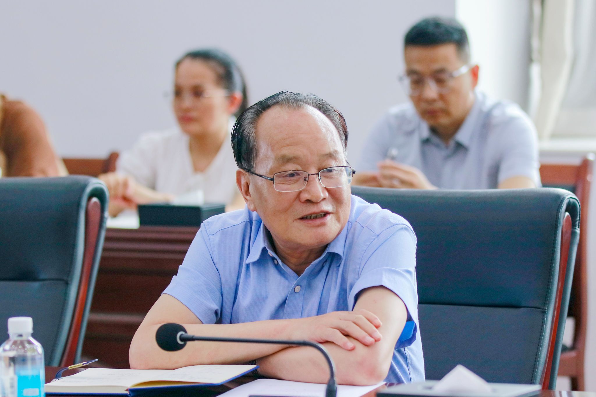 本网讯(教学质量监测与评估中心)5月20日上午,学校在高要校区综合楼12楼会议室召开本学期第4次本科教学工作合格评估迎评推进会。在校的全体校领导、党群及行政管理服务部门主要负责人、教辅单位主要负责人、教学单位党政主要负责人、二级学院副院长、教学质量监测与评估中心全体成员参加会议,会议由学校常务副校长柴维斯主持。