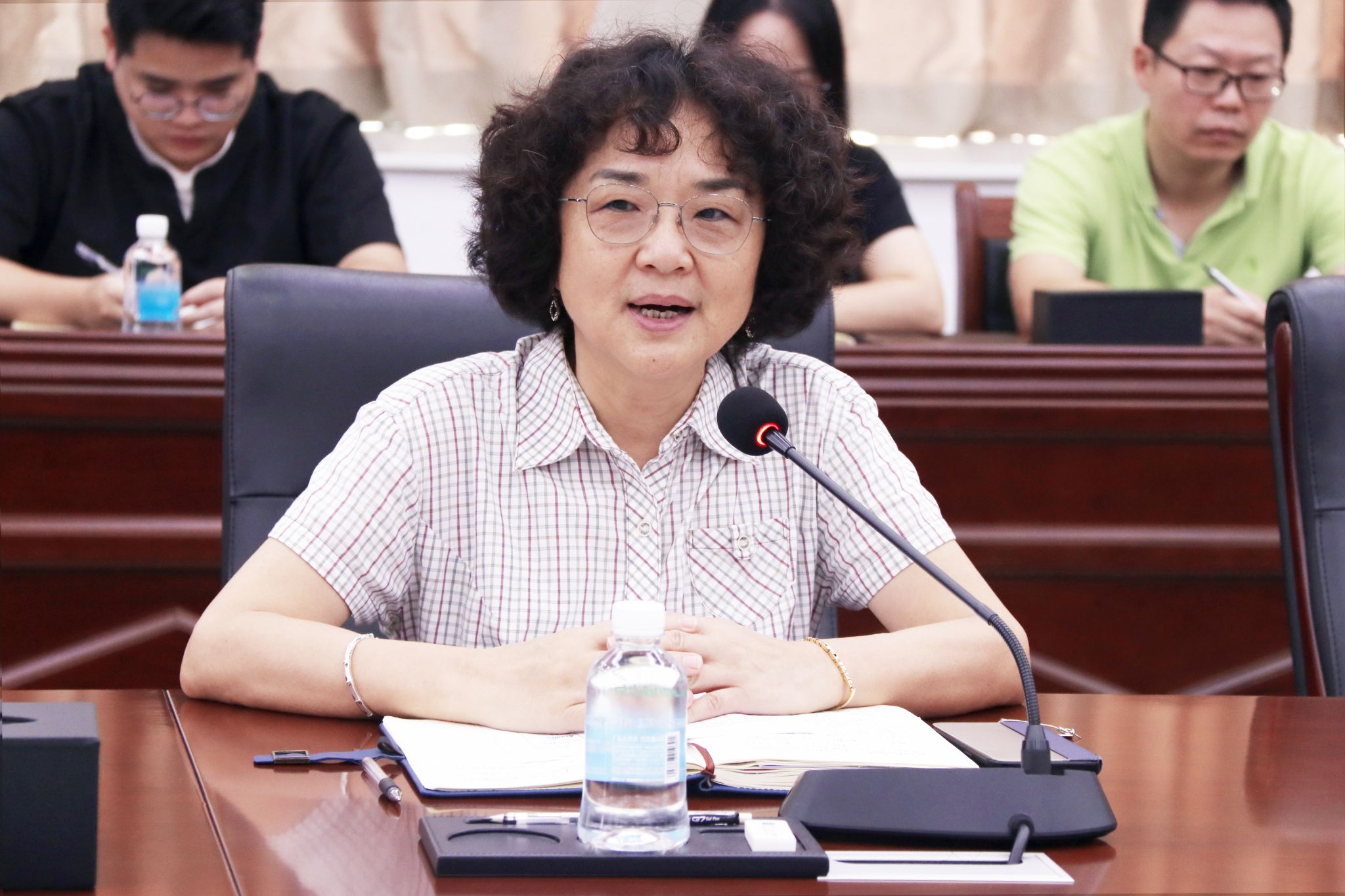 最后,胡海建书记在讲话中强调,本科教学工作合格评估是学校切实提升办学质量与人才培养质量的重要契机,各部门、单位要加强沟通与交流,分享工作经验;对于迎评工作中表现优秀的集体和个人,学校将加大支持力度、提供更多学习交流机会。