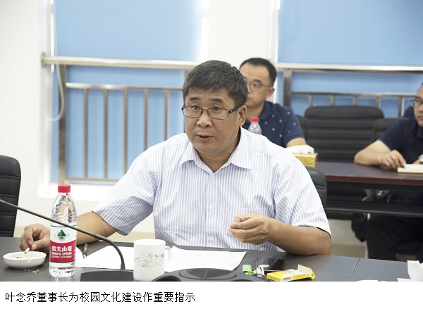 本网讯(宣传部)7月4日下午,学院在董事楼一楼会议室召开校园文化建设推进会。叶念乔董事长出席会议并作重要指示。张湘伟校长、党委张东生书记、叶浔董事、王义宁副校长、党委张宗珊副书记、刘香萍副校长、柴维斯副...