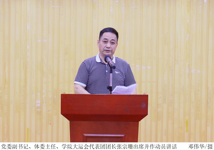 本网讯(宣传部 孟爱静)5月23日下午,beat365官网在42栋报告厅隆重举行广东省第十一届大学生运动会beat365手机版官网代表队出征仪式,为参赛队员加油鼓劲。党委副书记、体委主任、学院大运会代表团团长张宗珊出席并作动员讲话。...
