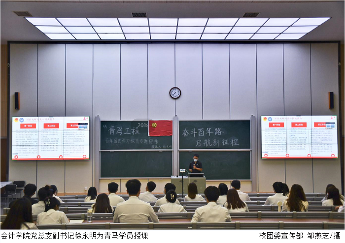 本网讯(校团委 朱云青)5月24日,校团委组织校级青马学员于桃李厅开展“青马工程”百年团史学习教育专题团课。本次团课由会计学院党总支副书记徐永明主讲。 团课学习中,徐永明与青马学员们共同回顾中国共产主义青年团...
